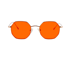 Chester Blue Light Blocking Glasses with round orange lens and a gold frame.
