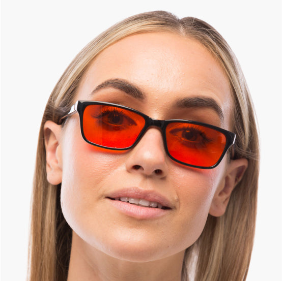 The exact frequencies of light in line with science are blocked with our amber/red lenses. We know that blue and green light found between 400nm-550nm disrupts melatonin production and damages your sleep. Our Blue Light Blocking Glasses block 100% of blue and green light that falls between 400nm and 550nm ensuring you have the most optimal blue blockers in the world.