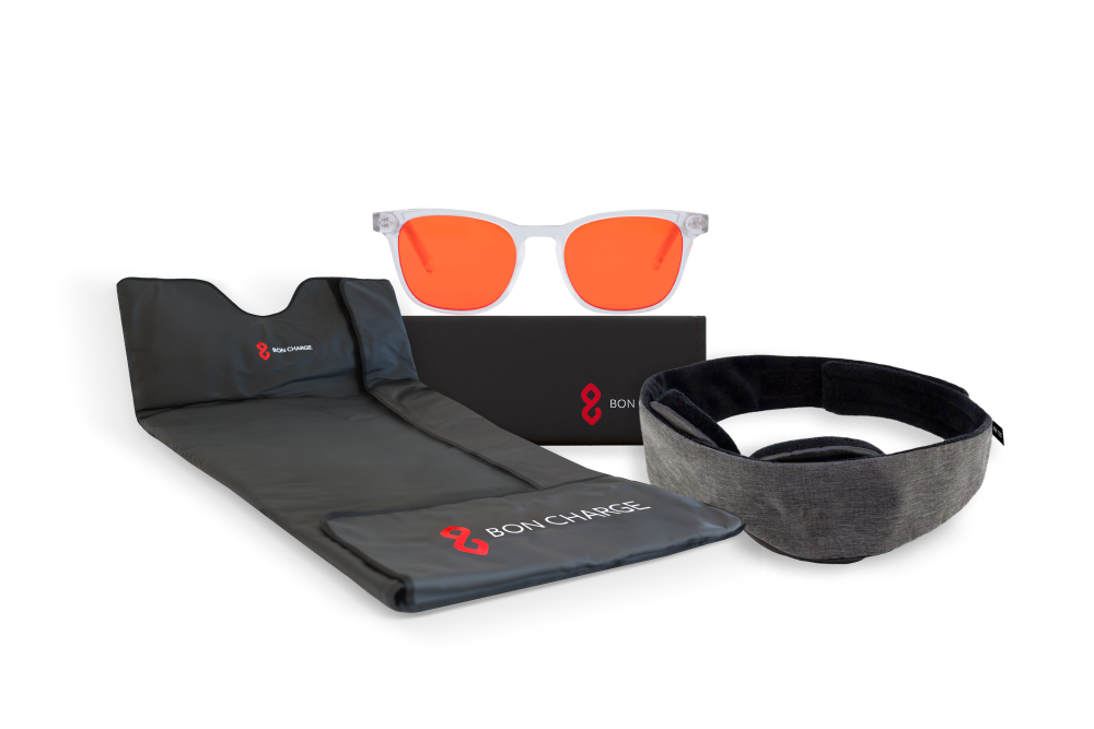 Deep sleep starts here. The Dream Repair Kit combines BON CHARGE’s bestselling sleep tools, Crystal Blue Light Blocking Glasses, Classic Blackout Sleep Mask, and Sauna Blanket, to help you wind down, switch off, and wake up restored.