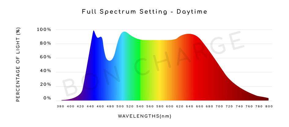A full spectrum light bulb is a bulb that emits all colours of light in similar quantities. This is the same as sunlight. A true full spectrum light bulb will have different settings to mimic sunlight at different times of the day and night.